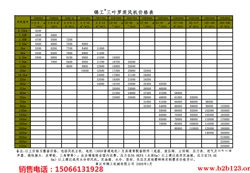 質保期:質保期一年,質保期內免費服務(人為損壞除外),終身有償維修。以下為羅茨風機價格表